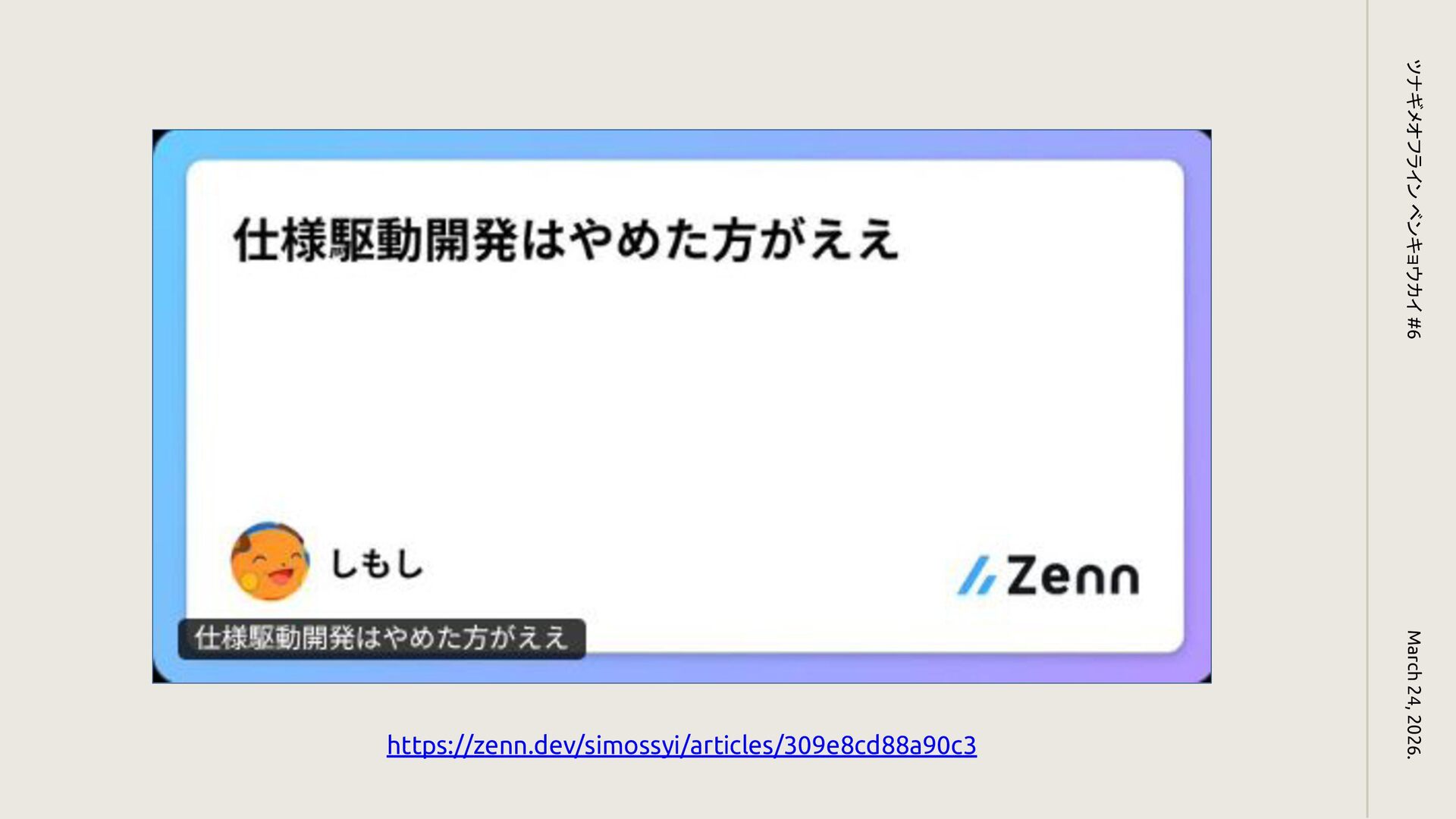 https://zenn.dev/simossyi/articles/309e8cd88a90c3 March 24, 2026. ツナギメオフライン ベンキョウカイ #6
