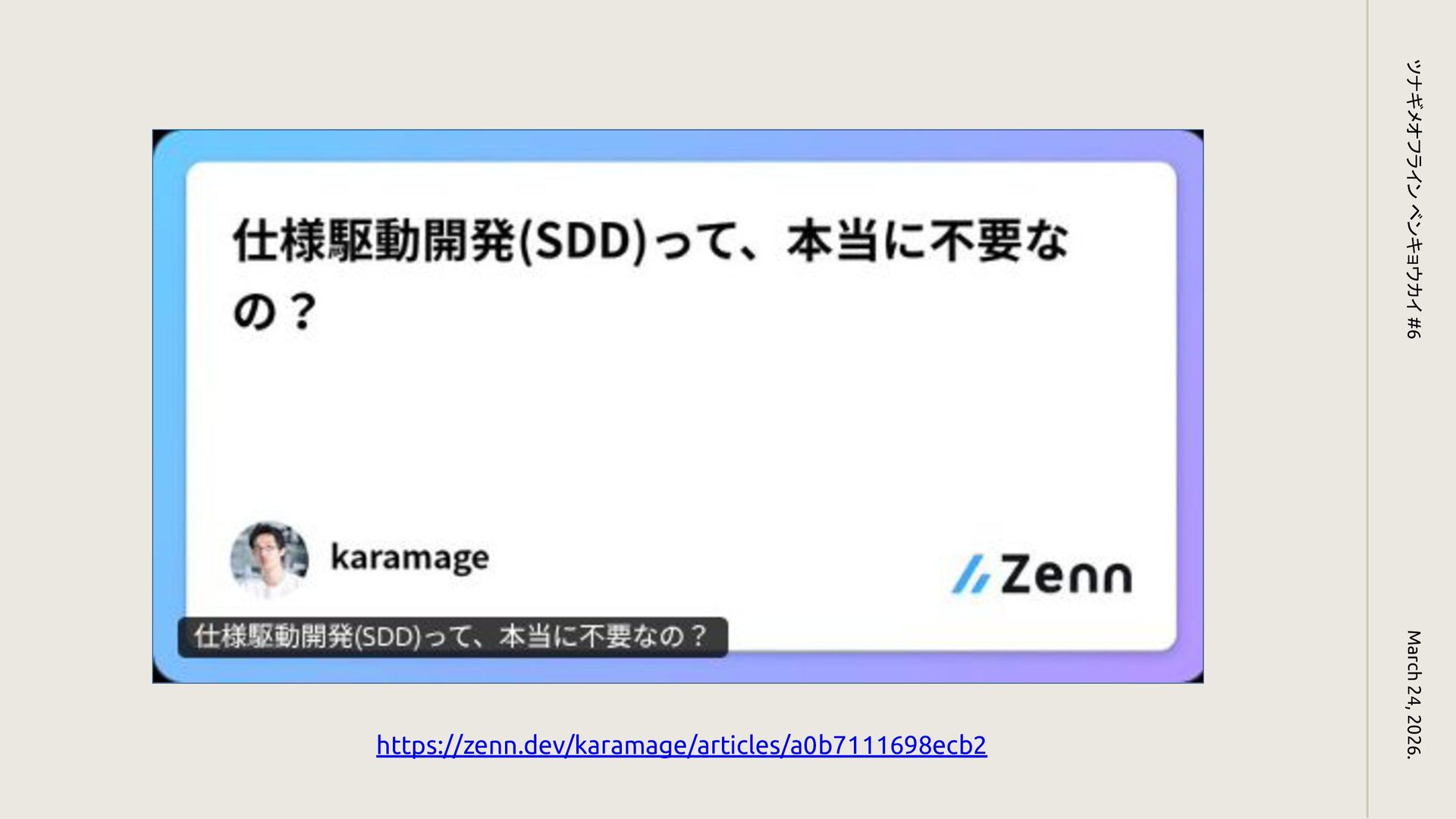 https://zenn.dev/karamage/articles/a0b7111698ecb2 March 24, 2026. ツナギメオフライン ベンキョウカイ #6