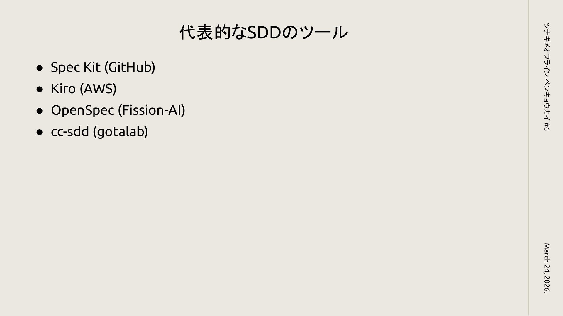 SDD(Spec-Driven Development) March 24, 2026. ツナギメオフライン ベンキョウカイ #6