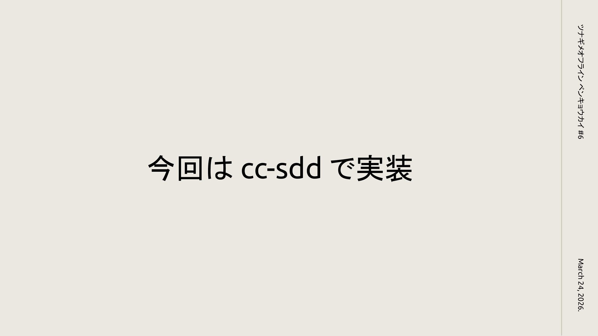 今回は cc-sdd で実装 March 24, 2026. ツナギメオフライン ベンキョウカイ #6