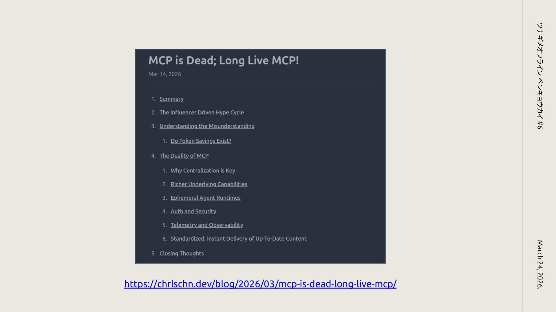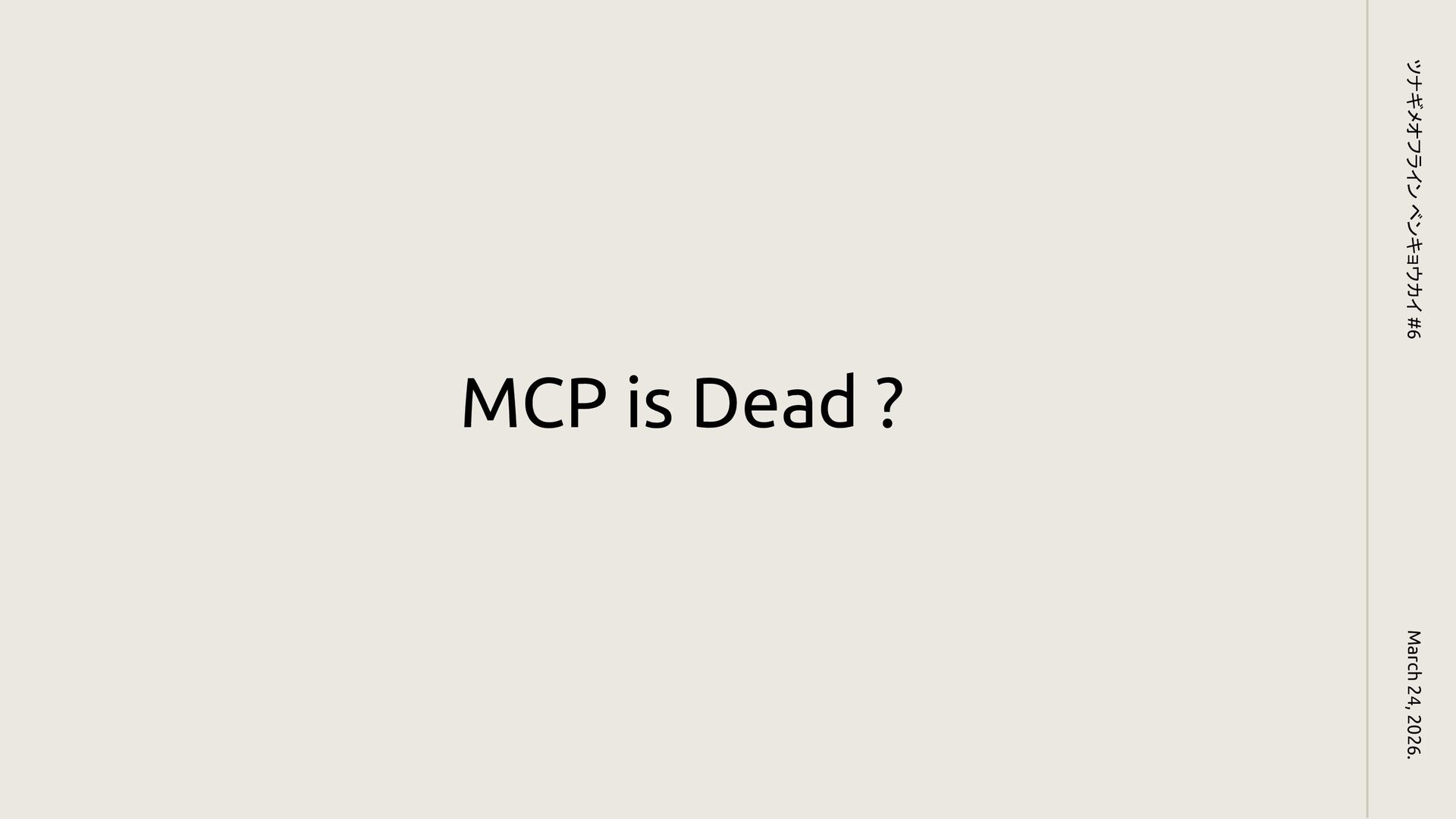 MCP is Dead ? March 24, 2026. ツナギメオフライン ベンキョウカイ #6