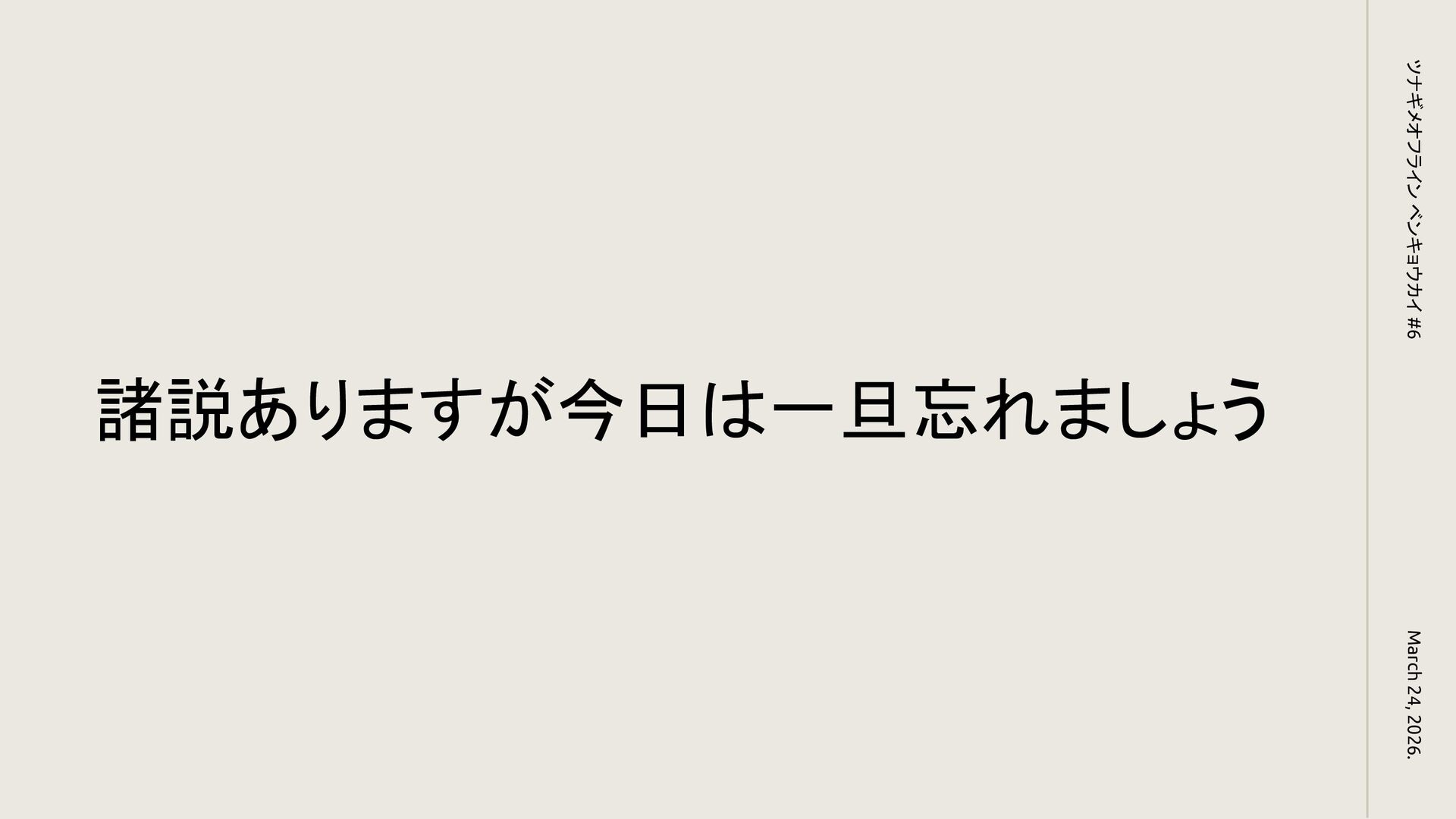 諸説ありますが今日は一旦忘れましょう March 24, 2026. ツナギメオフライン ベンキョウカイ #6