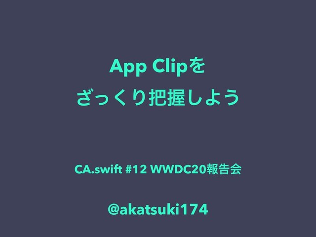 App ClipΛ ͬ͘͟ΓѲ͠Α͏ CA.swift #12 WWDC20ใࠂձ @akatsuki174