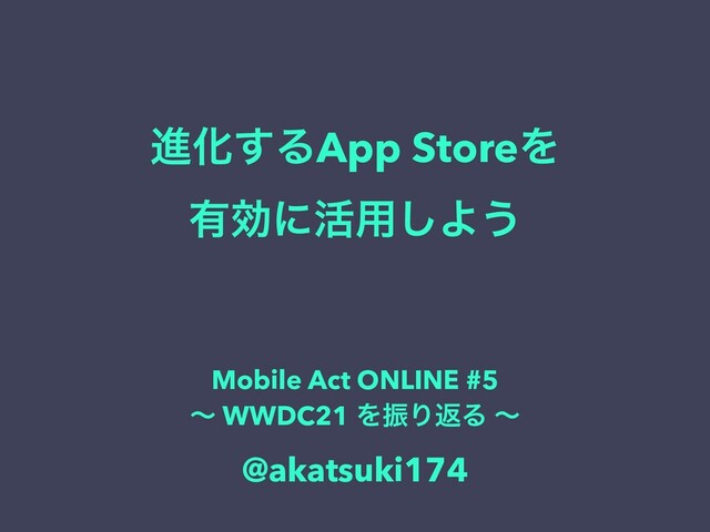 ਐԽ͢ΔApp StoreΛ ༗ޮʹ׆༻͠Α͏ Mobile Act ONLINE #5 ʙ WWDC21 ΛৼΓฦΔ