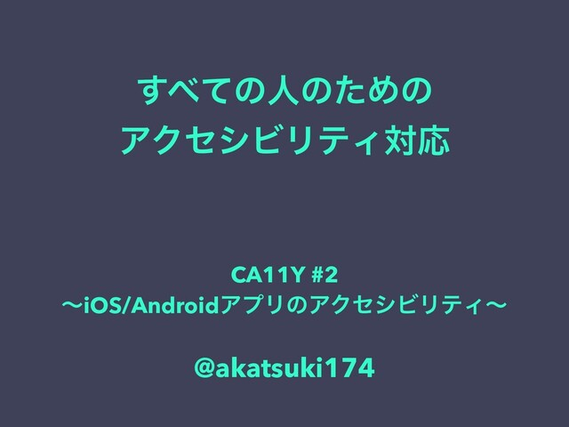 ͯ͢ͷਓͷͨΊͷ ΞΫηγϏϦςΟରԠ CA11Y #2 ʙiOS/AndroidΞϓϦͷΞΫηγϏϦςΟʙ @akatsuki174