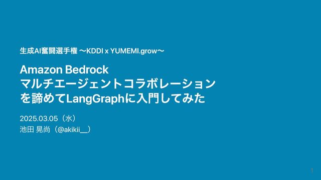 生成AI奮闘選手権 〜KDDI x YUMEMI.grow〜 Amazon Bedrock マルチエージェントコラボレーション を諦めてLangGraphに入門してみた 2025.03.05(水) 池田