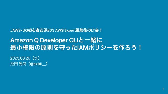 JAWS-UG初心者支部#63 AWS Expert視聴後のLT会! Amazon Q Developer CLIと一緒に 最小権限の原則を守ったIAMポリシーを作ろう! 2025.03.26(水) 池田