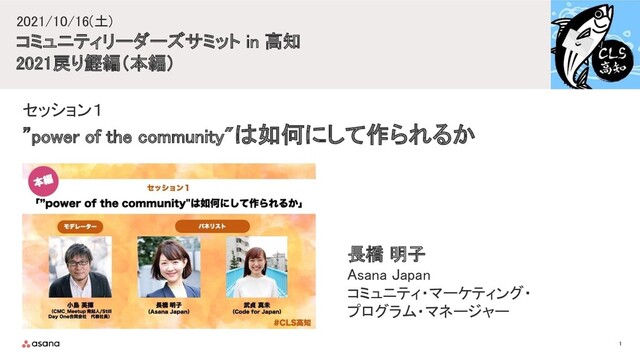 2021/10/16(土) コミュニティリーダーズサミット in 高知 2021戻り鰹編(本編) セッション1 ”power of the community"は如何にして作られるか" https://eventregist.com/e/CLS_Kochi_8