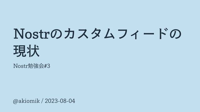 Nostr勉強会#3の発表内容です。Nostrにおけるカスタムフィードの実装の現状について調べたことをまとめています。