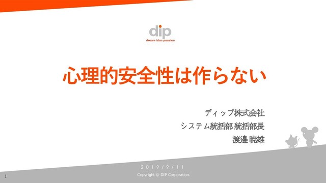 9 / 1 1 心理的安全性は作らない ディップ株式会社 システム統括部統括部長 渡邉暁雄