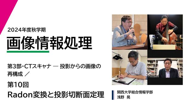2024年度秋学期 画像情報処理 第10回 Radon変換と投影切断面定理 (2024. 12. 6)