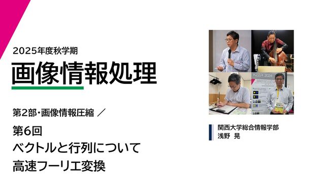 2025年度秋学期 画像情報処理 第6回 ベクトルと行列について(数学の補足説明・第2部の準備),高速フーリエ変換 (2025. 10. 31)
