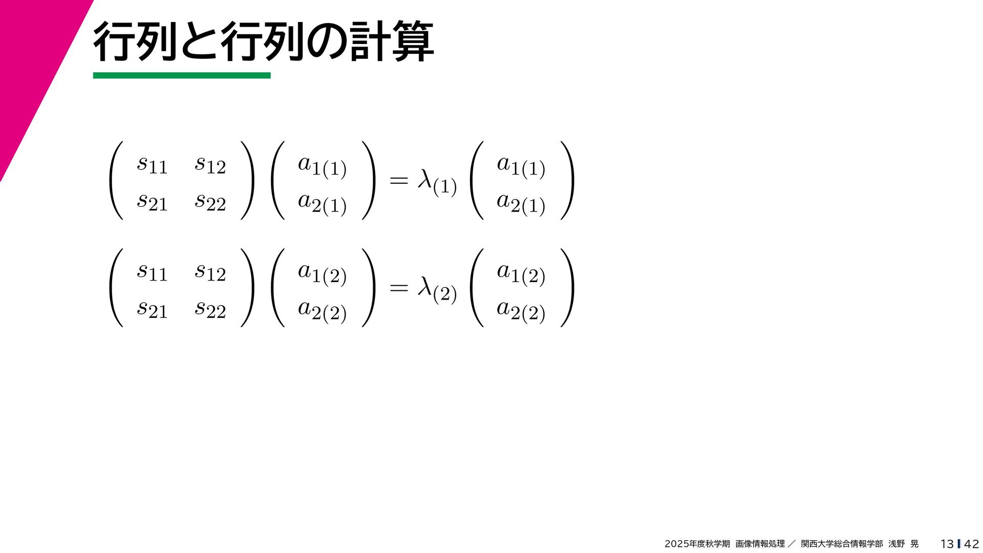 42 2025年度秋学期 画像情報処理 / 関西大学総合情報学部 浅野 晃 要素がp個の場合 17 s11 s12 s21 s22 a1