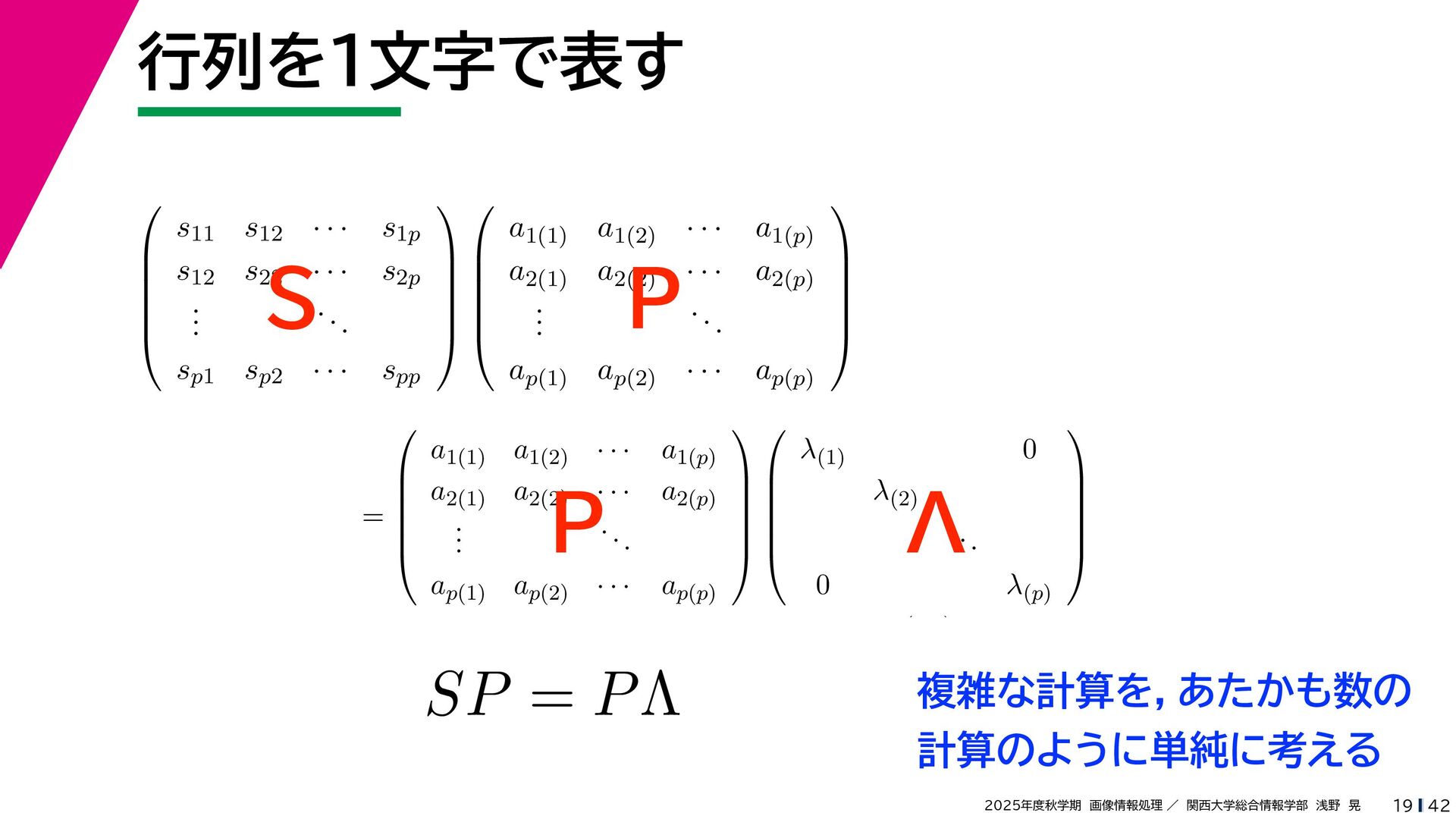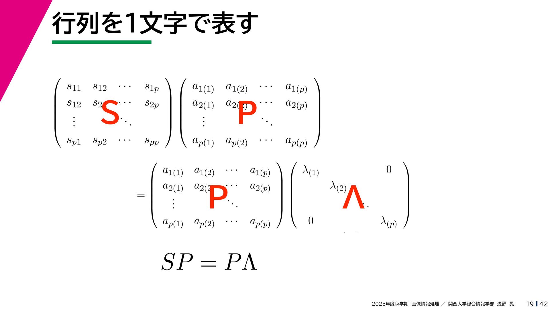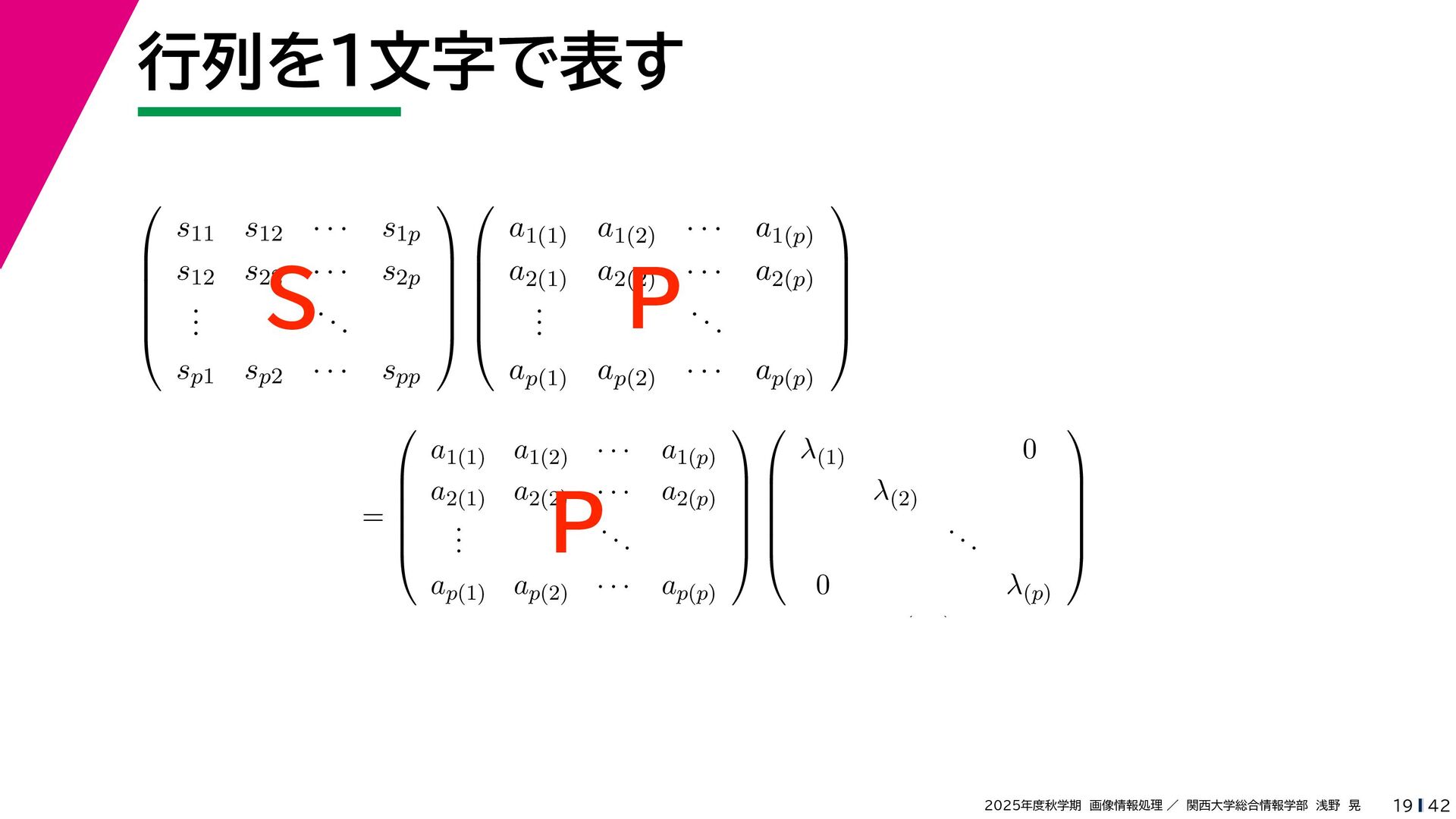 42 2025年度秋学期 画像情報処理 / 関西大学総合情報学部 浅野 晃 行列を1文字で表す 19
