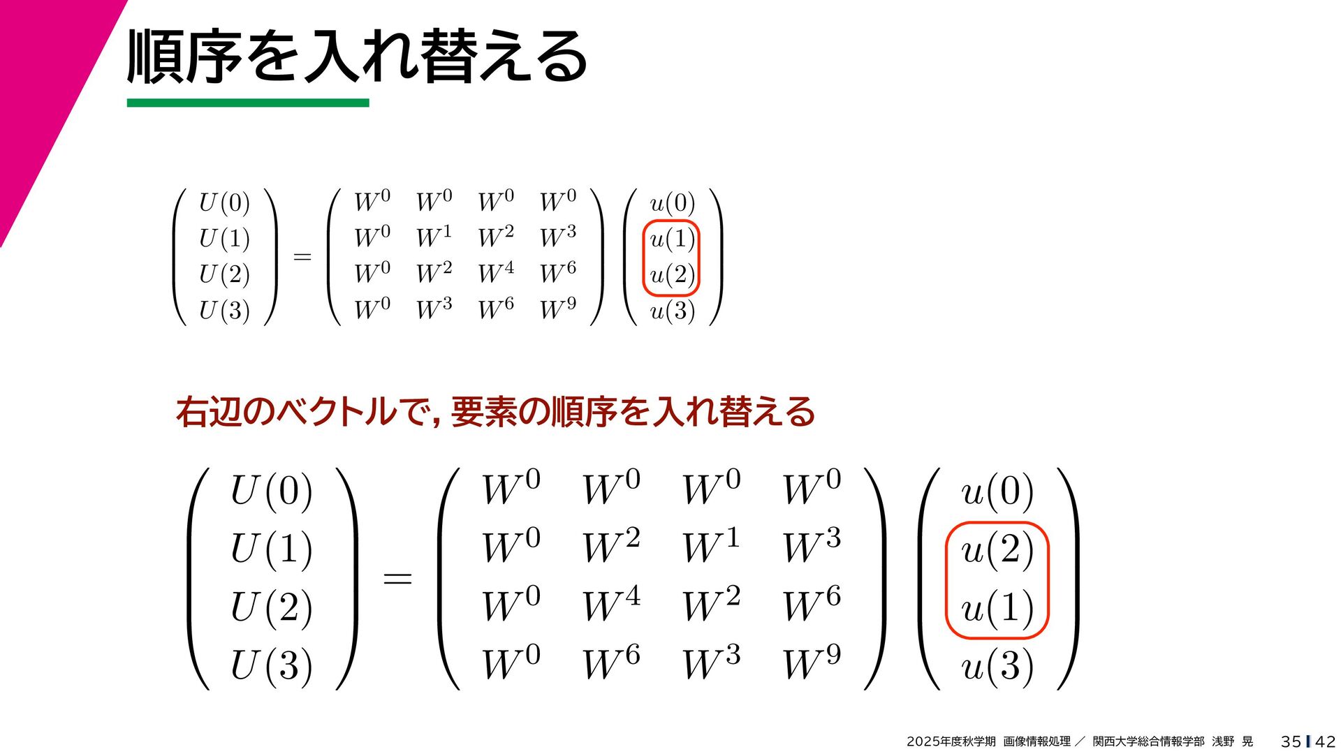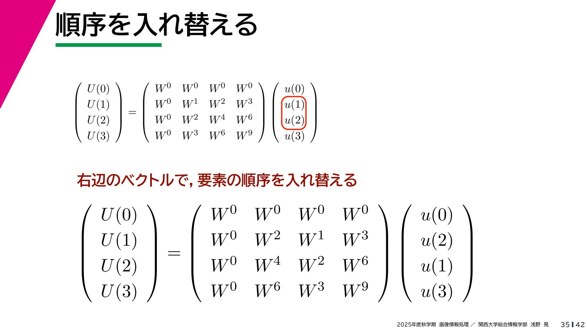 42 2025年度秋学期 画像情報処理 / 関西大学総合情報学部 浅野 晃 順序を入れ替える 35 右辺のベクトルで,要素の順序を入れ替える