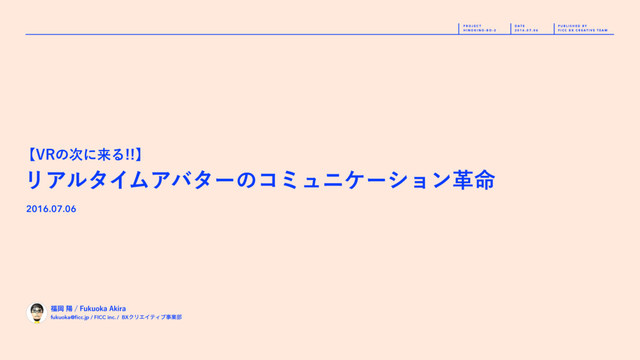 T I V E T E A M P U B L I S H E D B Y H I N O K I N O - B O - 2 D A T E 2 0 1 6 . 0 7 . 0 6 P R O J E C T fukuoka@ficc.jp / FICC inc. / BXΫϦΤΠςΟϒࣄۀ෦ Ԭཅ'VLVPLB"LJSB ʲ73ͷ࣍ʹདྷΔʳ ϦΞϧλΠϜΞόλʔͷίϛϡχέʔγϣϯֵ໋ 2016.07.06