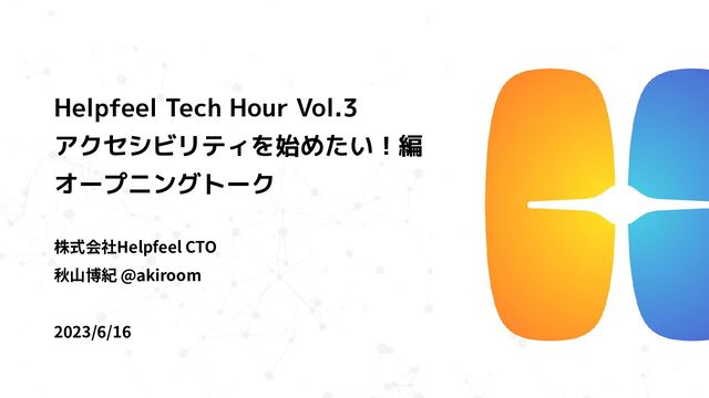 株式会社Helpfeel CTO 秋⼭博紀 @akiroom 2023/6/16 Helpfeel Tech Hour Vol.3 アクセシビリティを始めたい!編