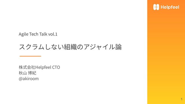 Agile Tech Talk vol.1 スクラムしない組織のアジャイル論 株式会社Helpfeel CTO 秋⼭ 博紀 @akiroom