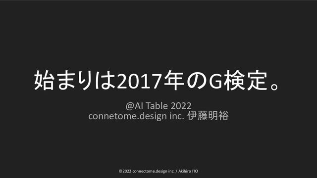 ©2022 connectome.design inc. / Akihiro ITO 始まりは2017年のG検定。 @AI Table 2022
