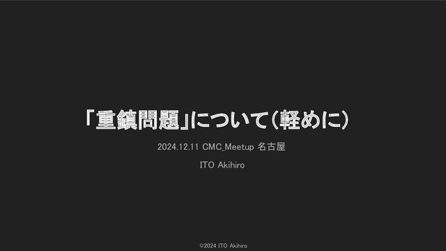 ©2024 ITO Akihiro 「重鎮問題」について(軽めに) 2024.12.11 CMC_Meetup 名古屋