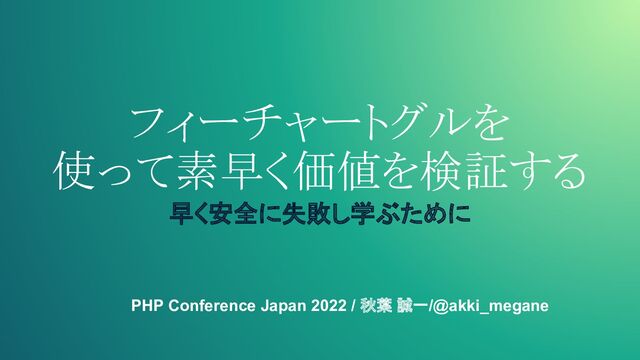 フィーチャートグルを 使って素早く価値を検証する 早く安全に失敗し学ぶために PHP Conference Japan 2022 / 秋葉 誠一/@akki_megane