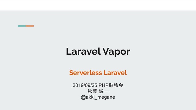 Laravel Vapor Serverless Laravel 2019/09/25 PHP勉強会 秋葉 誠一 @akki_megane