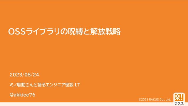 ©2023 RAKUS Co., Ltd. OSSライブラリの呪縛と解放戦略 2023/08/24 ミノ駆動さんと語るエンジニア怪談 LT @akkiee76