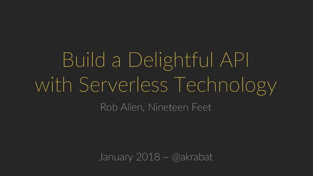 What makes an API or microservice delightful? An intuitive interface, consistent behaviour, and a reliable, scalable platform. This talk will cover how serverless technologies can help you to deliver all of these things for your API, ensuring that developers will want to work with your API over the competition. I'll cover how to design, build and deploy for serverless platforms, and how to use an API gateway to turn incoming HTTP requests into events that trigger those serverless functions. I'll share some top tips for solid API design - both from a technical HTTP standpoint and with developer experience firmly in mind. After this session, you'll be building and iterating on first-class APIs and microservices, and developers will be clamouring to use them.