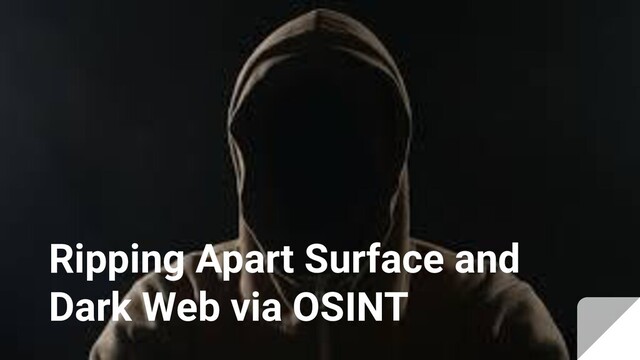 Agenda: Tools techniques & tactics to investigate data in surface, deep and dark-web