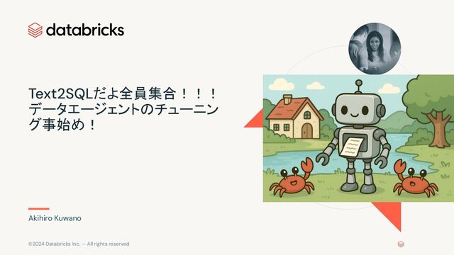 ©2024 Databricks Inc. — All rights reserved Text2SQLだよ全員集合!!! データエージェントのチューニン グ事始め!