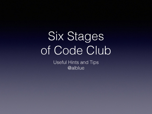 than PDF • Make sure children tick off each stage ✅ • Quiet students often need the most help • Ask students who finish early to do stretch goals • Show finished projects on central screen • Follow @codeclub and github.com/codeclub/