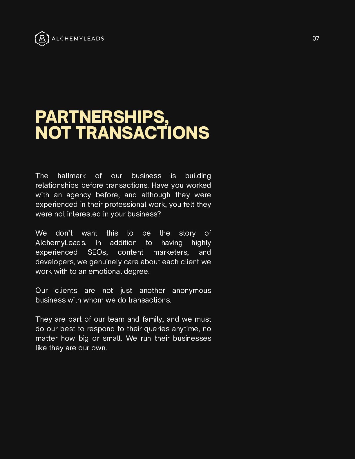 Partnerships, Not Transactions: We prioritize a deep, Clients-First approach. We don't just execute tasks; we align our expertise to your specific business goals, ensuring every decision impacts your bottom line.