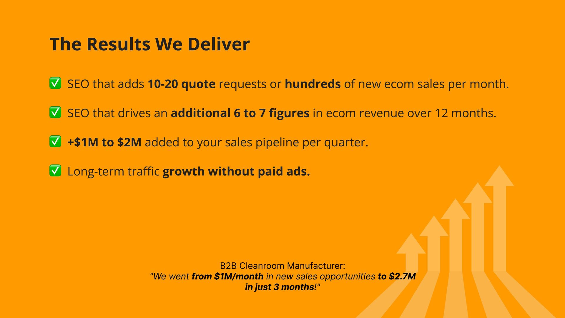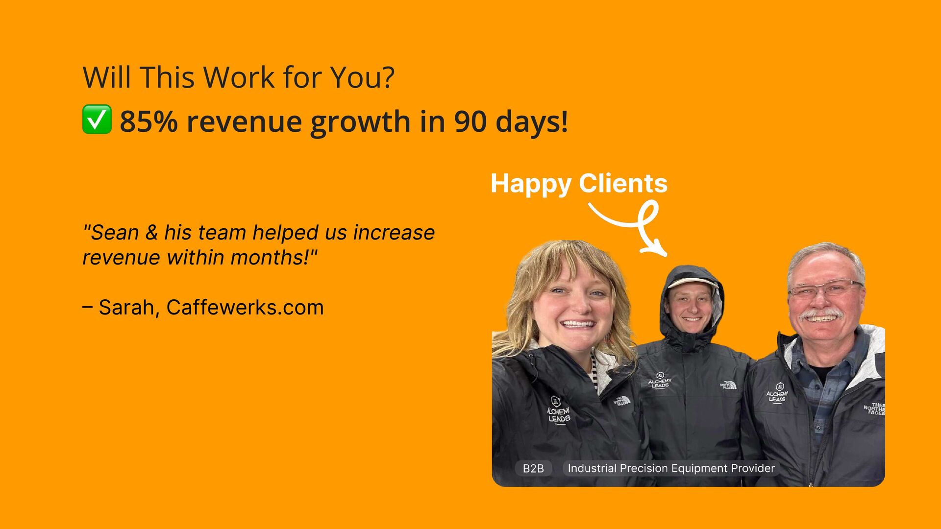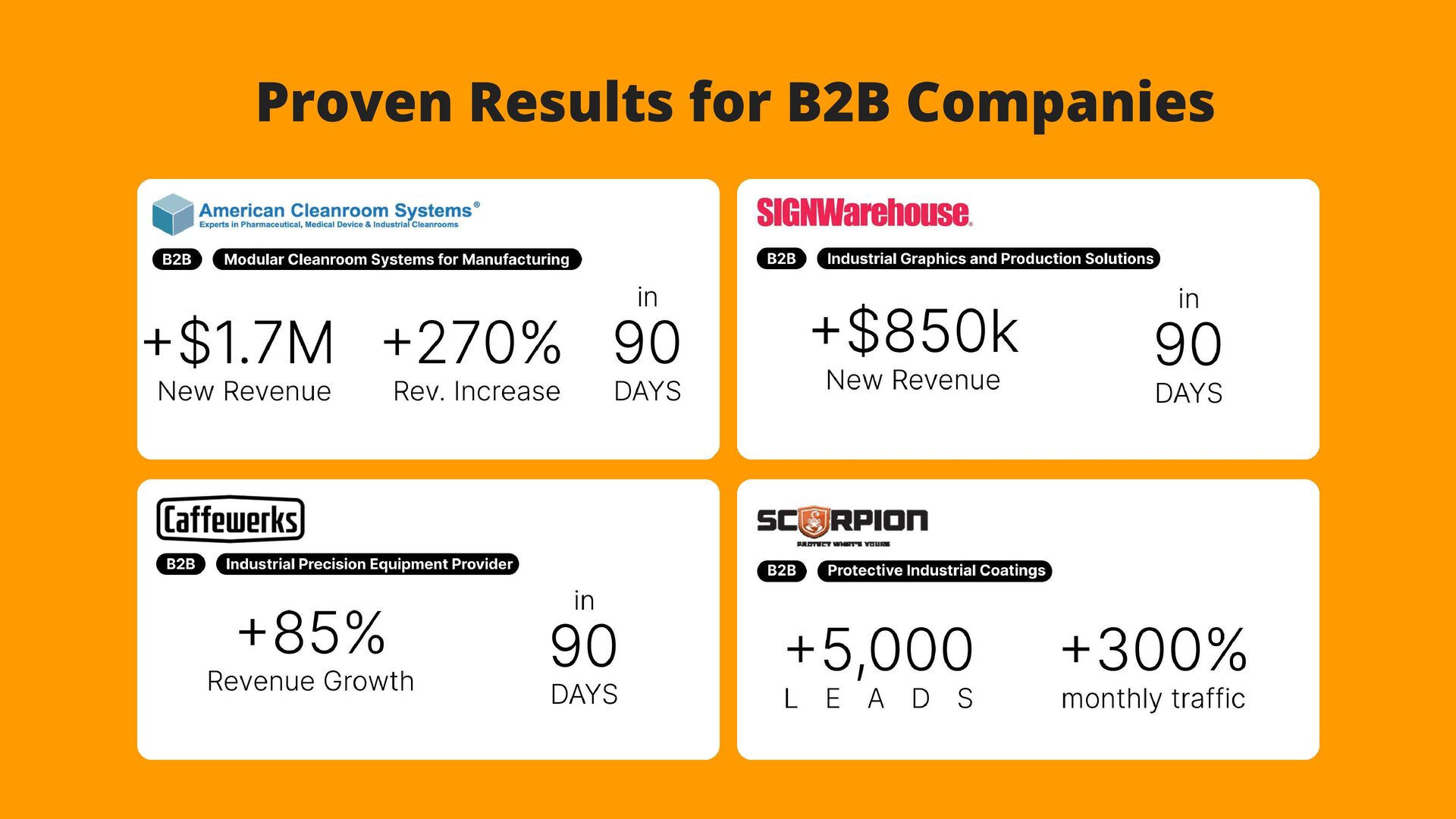 - One client went from $1M/month to $2.7M in new sales opportunities in just 3 months.
