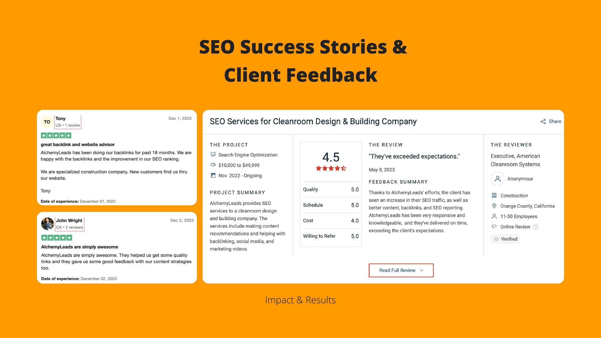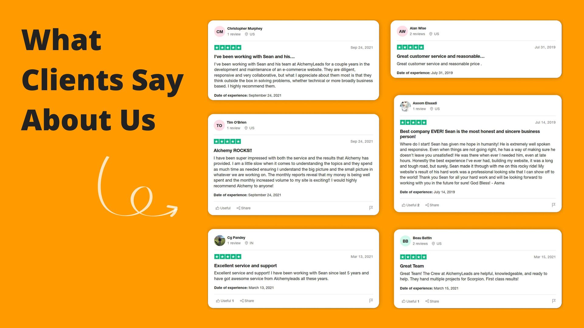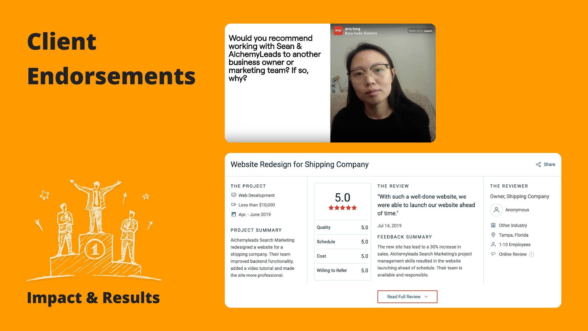 Clear Communication and Integrity: Our clients consistently praise the team's honesty, diligence, clear communication, and commitment to having rankings translate into $$$.