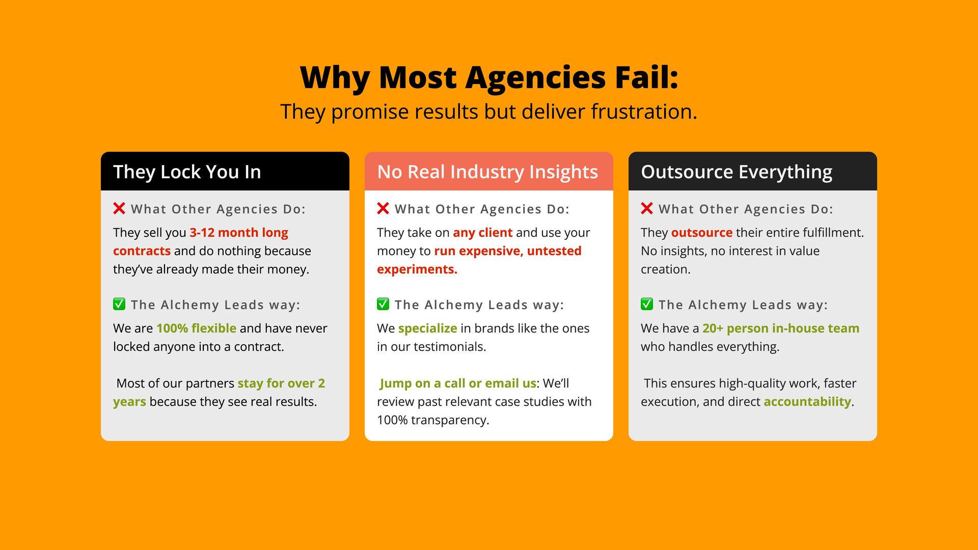 No Long-Term Contracts: We are 100% flexible and have never locked a partner into a contract; partners stay because they see real results.