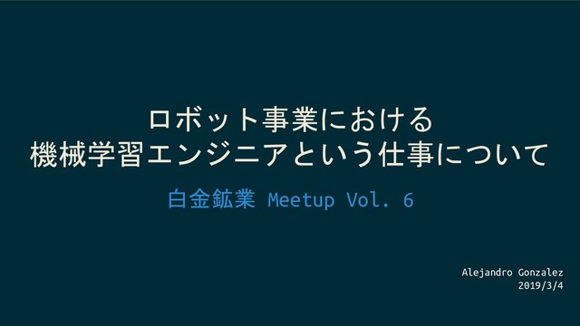 ロボット事業における 機械学習エンジニアという仕事について 白金鉱業 Meetup Vol. 6 Alejandro Gonzalez 2019/3/4