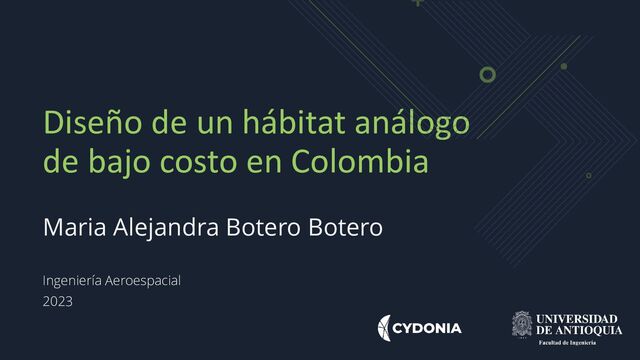 El Hábitat Análogo de Exploración Espacial Simulada (HAdEES-C), situado en Bogotá, Colombia, es el primer hábitat de simulación para misiones análogas construido en el país. Operado por la Fundación Cydonia, este hábitat brinda la oportunidad de desarrollar y probar operaciones en condiciones simuladas similares a las de la Luna, Marte y otros cuerpos planetarios. El objetivo de esta práctica es apoyar el desarrollo de actividades científicas e ingenieriles en la dirección técnica de HAdEES-C mediante el levantamiento de planos, el apoyo al diseño de operaciones y la ejecución de actividades de divulgación. Como resultado, se ha creado un repositorio abierto que brinda acceso gratuito a los planos estructurales y de redes del hábitat análogo, permitiendo su uso y referencia como hoja de ruta para la creación de iniciativas similares en todo el mundo. Además, se ha contribuido a la planificación de las operaciones en la estación. Por último, se han realizado actividades de apropiación social del conocimiento en espacios de divulgación, principalmente en redes sociales. En resumen, en esta práctica se ha brindado apoyo en la planeación, desarrollo y prueba de conceptos, operaciones y actividades en el Hábitat Análogo de Exploración Espacial Simulada HAdEES-C. Los resultados obtenidos han permitido la realización de los planos del hábitat, el avance en la planificación de futuras misiones análogas y la promoción del interés y la participación en la exploración espacial a través de actividades divulgativas.