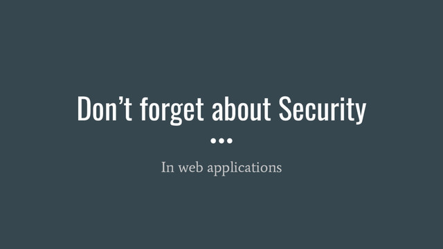4. Application Security is ignored or underrated • Complex topic •