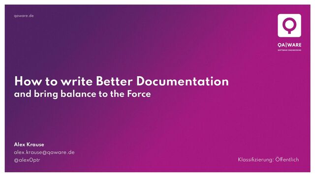 In this talk, I will show you how to document with structure and clear frameworks. Firstly, we will look at types of documentation, structural standards and suitable styles. In the technical part, we'll look at how to manage extensive documentation from multiple repositories, create easily searchable pages and use linters for consistent style.