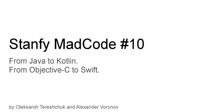 println("$name, $age years of age") // prints "Jane, 35 years of age" Stanfy MadCode #10