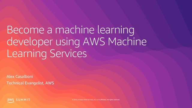 rights reserved. S U M M I T The best place to run TensorFlow Fastest time for TensorFlow 65% 90% 30m 14m • 85% of TensorFlow workloads in the cloud runs on AWS (2018 Nucleus report) • Available w/ Amazon SageMaker and the AWS Deep Learning AMIs