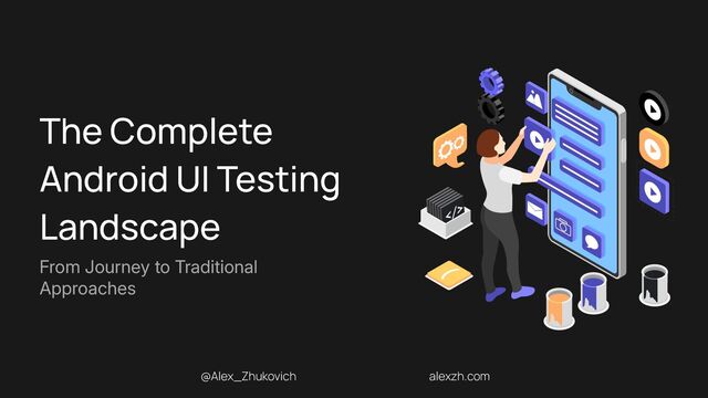native frameworks with real examples Ul Testing in Practice 01 Overview of available Android Ul testing options Ul Testing Landscape 03 Compare approaches and find the right tool for your team Framework Comparison alexzh.com