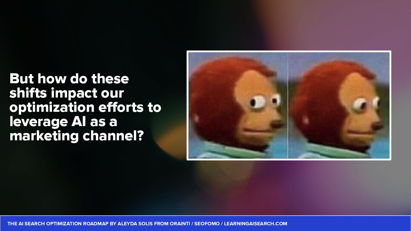 Authority & Popularity Signals 5. Results Presentation THE AI SEARCH OPTIMIZATION ROADMAP BY ALEYDA SOLIS FROM ORAINTI / SEOFOMO / LEARNINGAISEARCH.COM Let’s see what changes with AI Search, the industry state with it & how to align our optimization actions accordingly