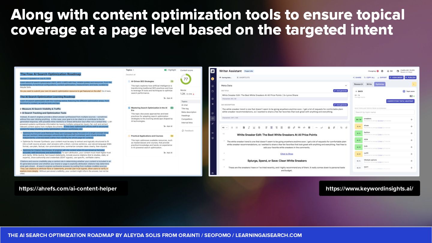 at a page level based on the targeted intent WINNING ECOMMERCE AI SEARCH BY ALEYDA SOLIS FROM ORAINTI / SEOFOMO / LEARNINGAISEARCH.COM THE AI SEARCH OPTIMIZATION ROADMAP BY ALEYDA SOLIS FROM ORAINTI / SEOFOMO / LEARNINGAISEARCH.COM https://ahrefs.com/ai-content-helper