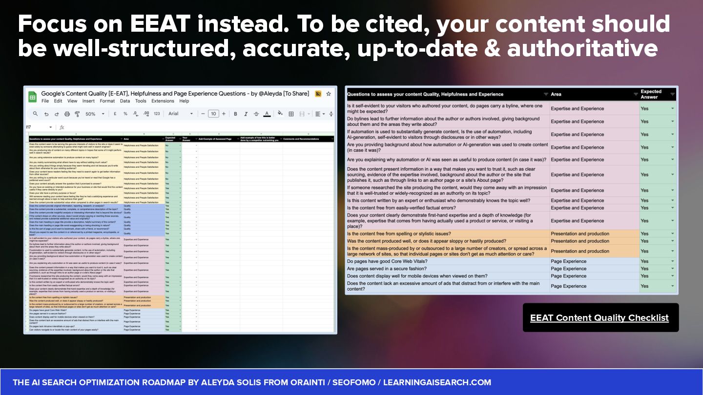 cited, your content should be well-structured, accurate, up-to-date & authoritative WINNING ECOMMERCE AI SEARCH BY ALEYDA SOLIS FROM ORAINTI / SEOFOMO / LEARNINGAISEARCH.COM THE AI SEARCH OPTIMIZATION ROADMAP BY ALEYDA SOLIS FROM ORAINTI / SEOFOMO / LEARNINGAISEARCH.COM