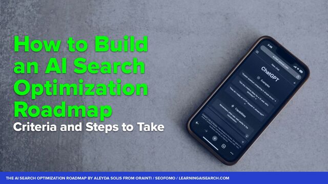 SEOFOMO / LEARNINGAISEARCH.COM THE AI SEARCH OPTIMIZATION ROADMAP BY ALEYDA SOLIS FROM ORAINTI / SEOFOMO / LEARNINGAISEARCH.COM Establish those consistent patterns in answer formats and sources aligned with those of your site vs AI Mode ChatGPT