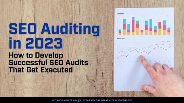 I’m Aleyda Solis * SEO Consultant & Founder at Orainti * SEO Speaker at +100 Events in +20 countries * Author “SEO. Las Claves Esenciales.” * Crawling Mondays Video & Podcast Series Host * #SEOFOMO & #MarketingFOMO Newsletters Author * Maker LearningSEO.io * European Search Personality of the Year in 2018 * remoters.net Co-Founder Thanks! Questions? SEO AUDITS IN 2023 BY @ALEYDA FROM ORAINTI AT #LOCALSEOFORGOOD
