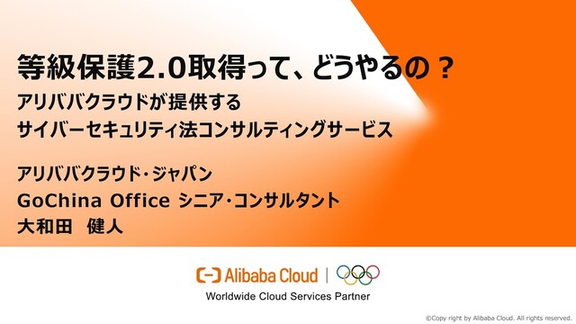 ネットワークサービスを利用する中国に進出する企業は、対応が必須となる中国サイバーセキュリティ法等級保護2.0(MLPS2.0)。対応が義務化されているだけでなく、厳しい罰則が適用されるケースも増えており、早急な対応が求められています。一方で、具体的に対応を行う場合、企業としてどの様に取り組むべきなのか、等級保護2.0の取得プロセスは複雑で、全貌が掴みにくい状況です。本セッションではアリババクラウドのMLPS2.0取得コンサルティングサービスを実例に、等級保護取得のプロセスをご紹介します。