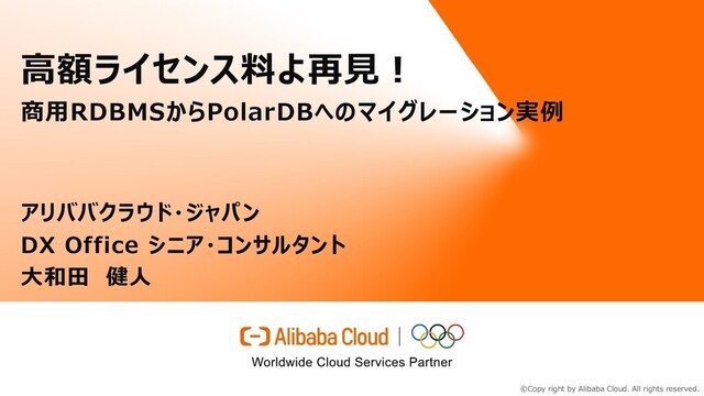 中国企業と日本企業では、大きく生産性、オペレーションコストが構造的に違うと言われています。その中でも、中国企業の特徴として、果敢に最新のテクノロジーを活用して、積極的なコストダウンの実現が挙げられます。本セッションでは、商用RDBMSからアリババクラウドが提供するクラウド・ネイティブデータベースに移行した企業のケーススタディと、移行のステップをご紹介します。ケーススタディでは、OracleからPolarDBに乗り換えることで、移行コストも含めて年間運用コストが50%削減された事例をご共有いたします。