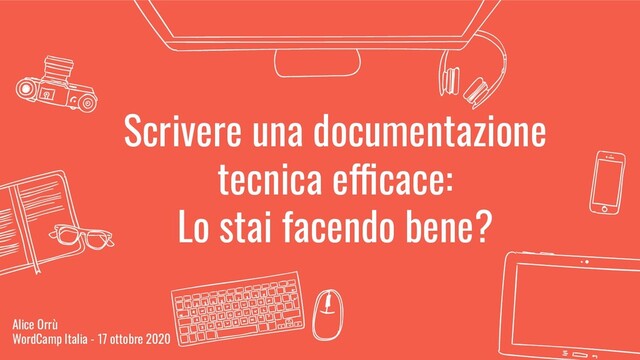 In questa presentazione vedremo alcune buone pratiche per scrivere una documentazione tecnica efficace, anche quando l’argomento da trattare è ostico.